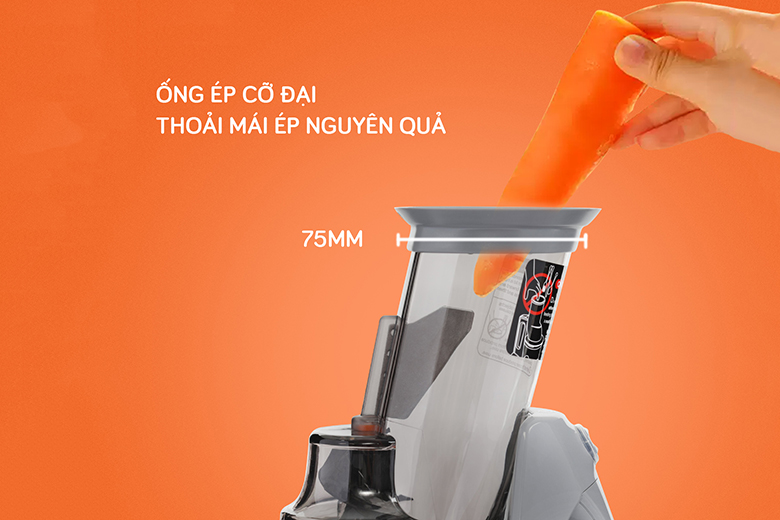 Với máy ép chậm Unie người dùng không cần tốn nhiều thời gian xắt nhỏ thực phẩm. Miệng ống tiếp thực phẩm được thiết kế dạng hình trụ với đường kính lớn lên tới 75mm có thể ép được những trái cây cỡ nhỏ và vừa, rau củ một cách dễ dàng. Điểm đặc biệt ở bên trong ống tiếp nguyên liệu đó là lưỡi dao nằm dọc thân ống, khi thả thực phẩm xuống thì lưỡi dao sẽ cắt xắt hoa quả, thuận tiện cho việc ép nguyên quả mà không cần gọt nhỏ trước, giúp người dùng tiết kiệm được nhiều thời gian và công sức chuẩn bị.