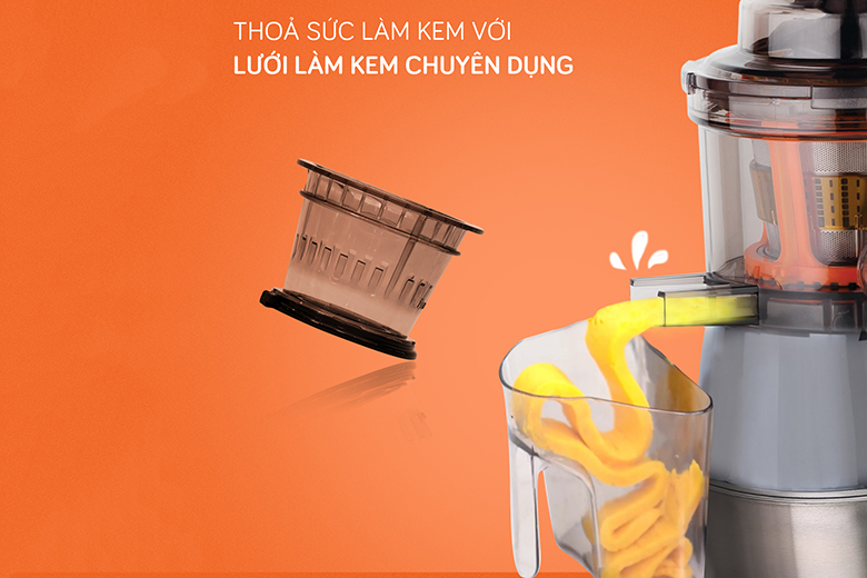Máy ép UE-580 được trang bị 2 lưới lọc với 2 mục đích khác nhau, 1 lưới lỗ nhỏ để làm nước ép và 1 lưới không lỗ để làm kem. Người dùng có thể linh hoạt 2 lưới lọc sao cho phù hợp với mục đích sử dụng, chỉ cần cấp đông hoa quả và thay lưới cho máy ép và để máy hoạt động là bạn đã có những ly kem, ly sinh tố đáp ứng nhu cầu giải khát của cả gia đình.