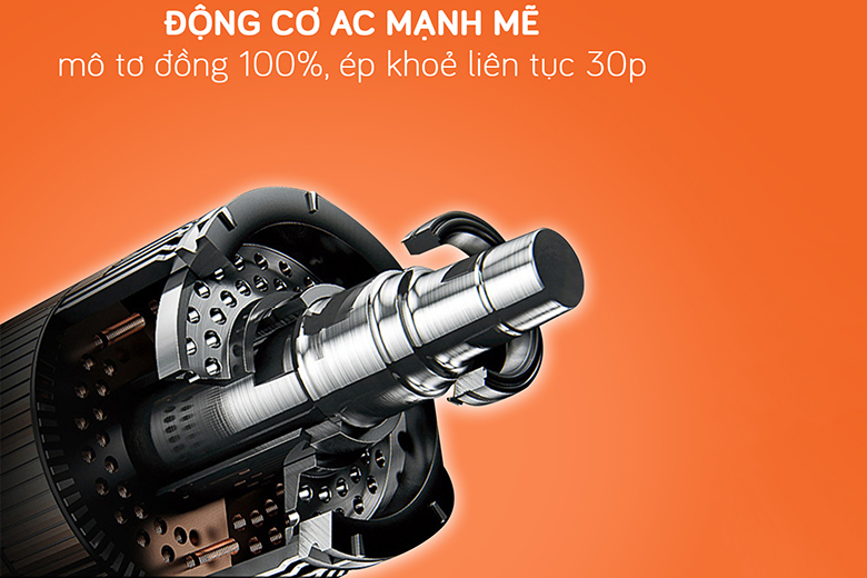 Máy ép Unie sở hữu động cơ AC mạnh mẽ kết hợp với mô tơ bằng đồng 100% giúp cho thiết bị hoạt động bền bỉ và cho khả năng ép liên tục lên tới 30 phút, đặc biệt phù hợp với những gia đình đông thành viên hoặc cửa hàng kinh doanh có nhu cầu sử dụng cao.
