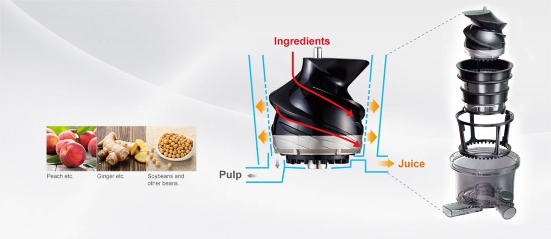 Máy ép chậm hoa quả Panasonic MJ-L500SRA có trục vít xoay từ từ ở tốc độ 45 vòng/phút để nghiền nguyên liệu, do đó chất dinh dưỡng không bị mát do nhiệt ma sát. Đây là cách rất hiệu quả để có chất dinh dưỡng.