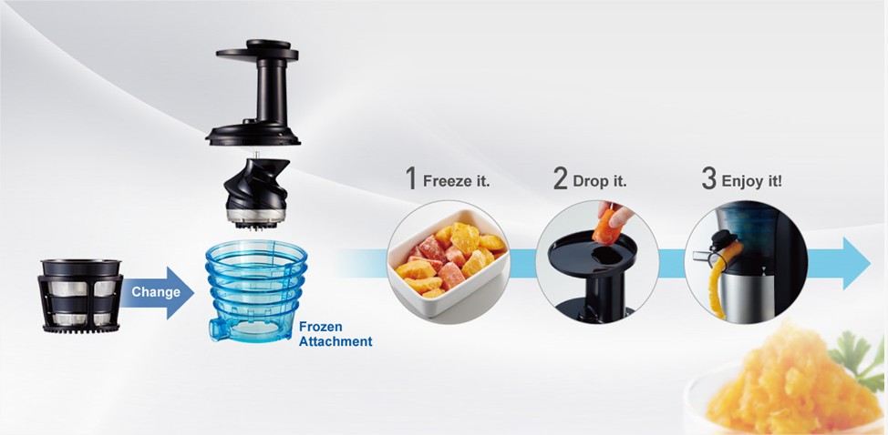 Với máy ép hoa quả, bạn chỉ cần lắp dụng cụ và thưởng thức hương vị đông lạnh.