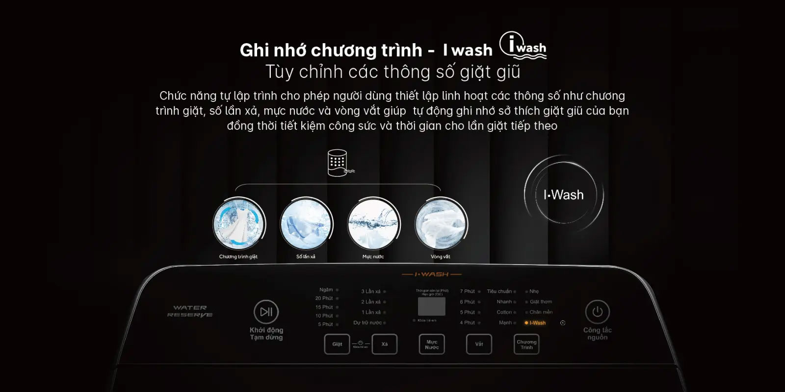 Đây là chức năng cho phép bạn có thể thiết lập linh hoạt các thông số như chương trình giặt, số lần xả, mực nước, số vòng vắt… theo sở thích của mình. Máy giặt sẽ tự động ghi nhớ giúp bạn tiết kiệm được thời gian và công sức lựa chọn cho những lần giặt tiếp theo.