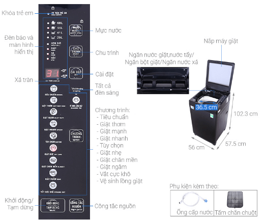- Khóa trẻ em: Tính năng này sẽ vô hiệu hóa các nút chức năng trên bảng điều khiển để tránh trẻ nghịch ngợm làm thay đổi chương trình cài đặt, ảnh hưởng tới quá trình vận hành.