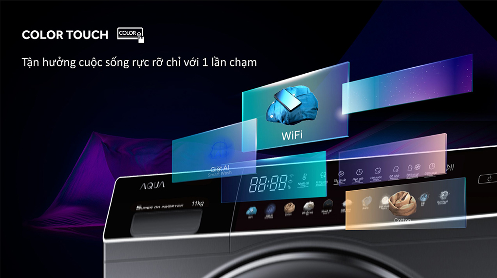 • Bảng điều khiển cảm ứng đa màu sắc, đây là sự kết hợp hài hoà giữa nghệ thuật và công nghệ.