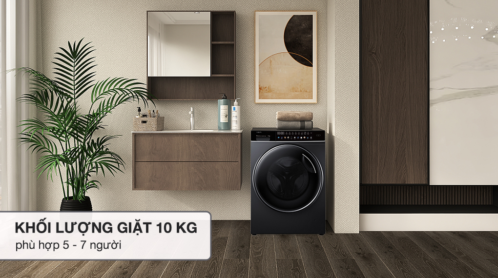 – Máy giặt với khối lượng giặt 10 kg, đáp ứng tốt nhu cầu giặt giũ cho từ 5 – 7 người.