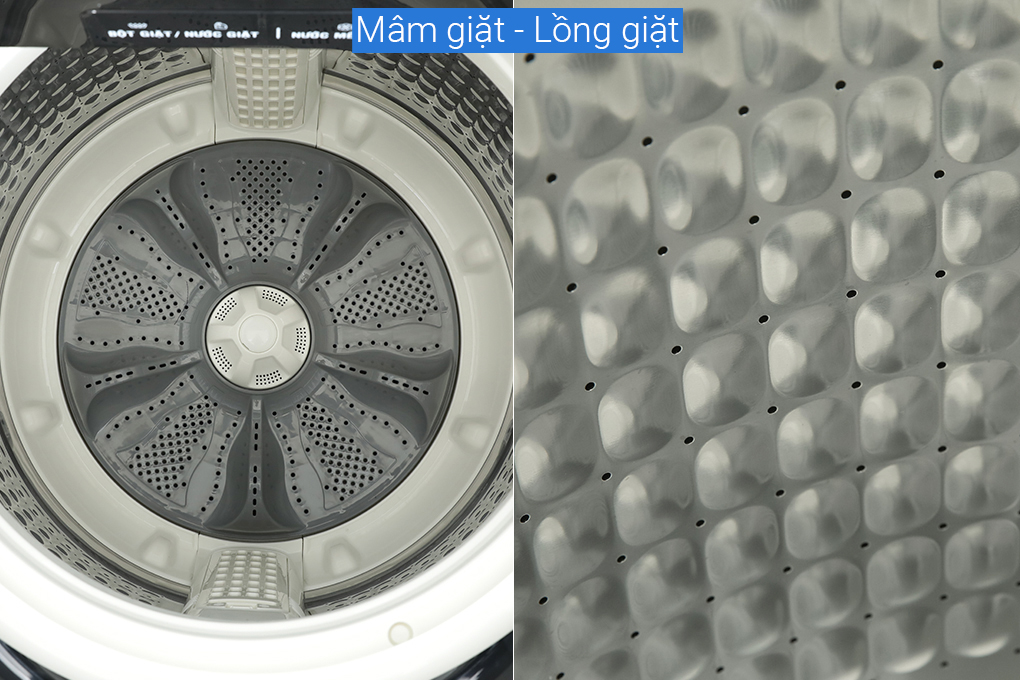 – Mâm giặt kháng khuẩn ABT: Mâm giặt được phủ lớp hóa chất đặc biệt có tác dụng kháng khuẩn đến 99.99%, nhờ đó nâng cao hiệu quả giặt sạch quần áo và duy trì độ bền máy tốt hơn.