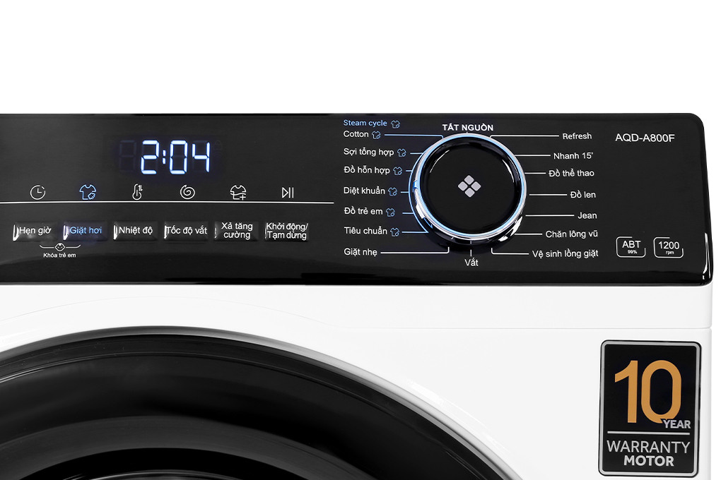Bảng điều khiển tiếng Việt được trang bị nút xoay dễ thao tác cùng màn hình Led hiển thị rõ nét, hỗ trợ bạn sử dụng máy giặt nhanh chóng.