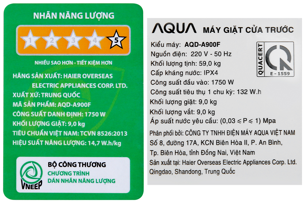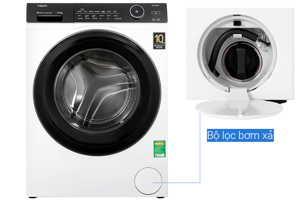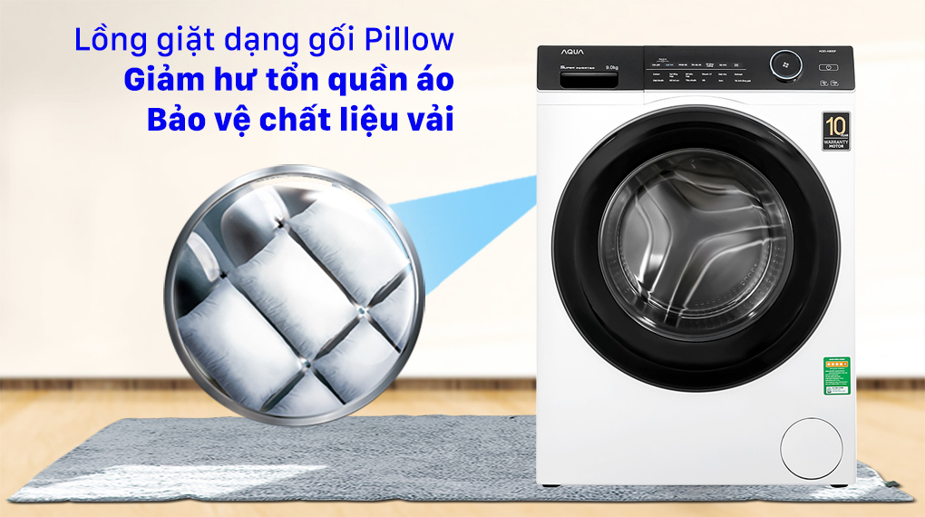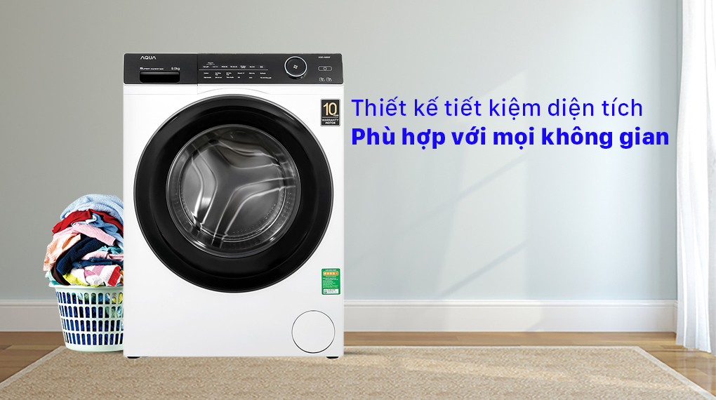 Máy giặt Aqua Inverter 9.0 KG AQD-A900F W là lựa chọn phù hợp cho những gia đình từ 3 – 5 thành viên. Máy giặt có khả năng tiết kiệm điện hiệu quả kèm với khả năng loại bỏ các tác nhân gây dị ứng bám trên quần áo một cách tối ưu, rất phù hợp cho những gia đình có trẻ nhỏ hoặc người có làn da nhạy cảm.