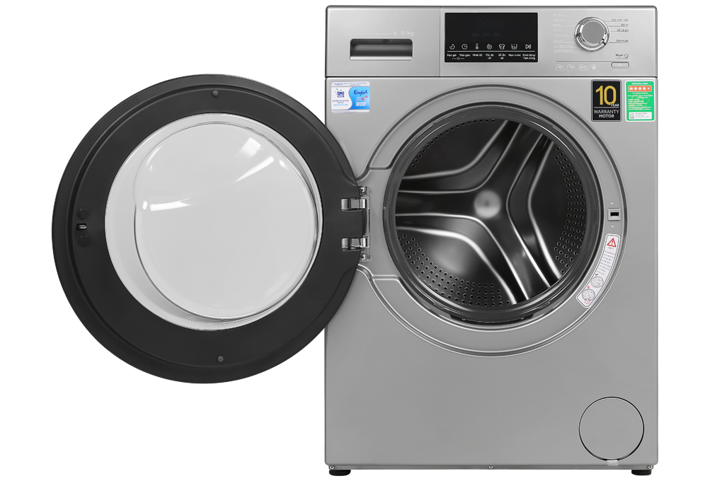 Máy giặt Aqua Inverter 9 kg AQD-D900F S sở hữu gam màu bạc sang trọng, trung tính cùng với thiết kế cửa trước tiện lợi, chắc chắn sẽ là một điểm nhấn nổi bật cho không gian nội thất của bạn.