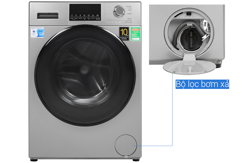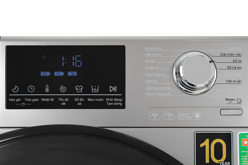 Máy giặt Aqua Inverter 9 kg AQD-D900F S với những công nghệ hiện đại như giặt nước nóng, Smart Dual Spray, hẹn giờ,… Chắc chắn sẽ đáp ứng đầy đủ các nhu cầu giặt giũ của cả gia đình bạn.