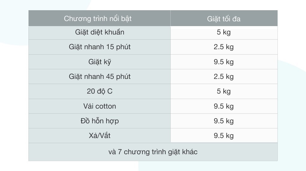 Khối lượng giặt 9.5 kg phù hợp với gia đình từ 5 – 7 thành viên