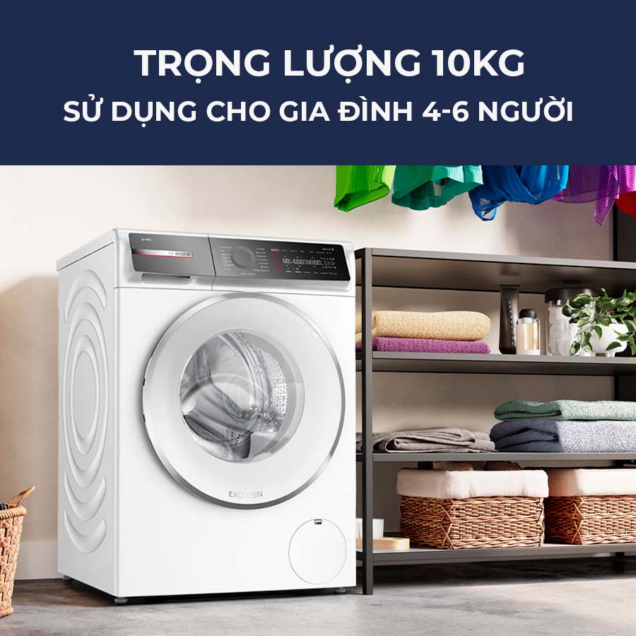 Với dung tích lồng lên tới 70 lít, máy giặt Bosch WGB256A90 có thể giặt lượng quần áo tối đa là 10kg. Dung tích này phù hợp cho những gia đình từ 5-7 thành viên