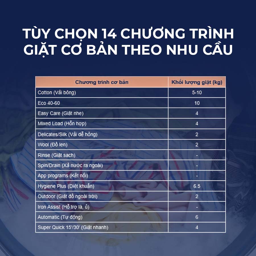 Tùy chọn 14 chương trình giặt cơ bản theo từng nhu cầu sử dụng