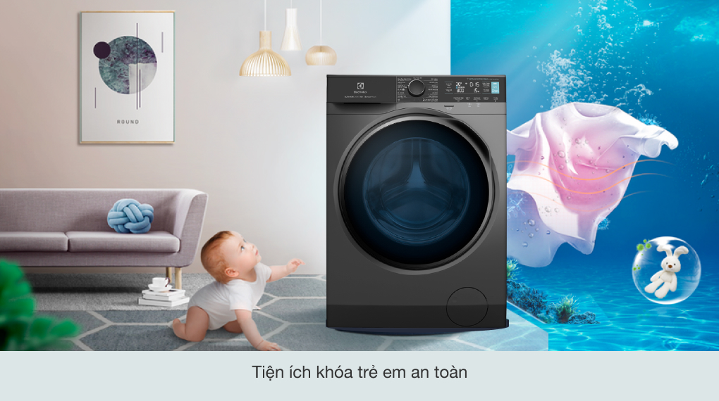 Tiện ích này còn giúp khóa cửa máy giặt trước, đảm bảo trẻ không mở cửa quá lâu gây ra các rủi ro như tràn nước hoặc chập mạch điện.