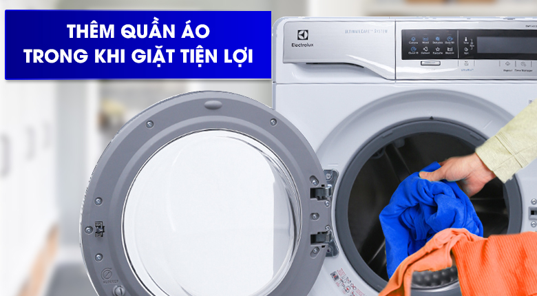 Với những chiếc máy giặt cửa trước thông thường, bạn sẽ không thể cho thêm quần áo bỏ quên vào máy giặt khi đang vận hành. Tuy nhiên, chức năng Add Clothes trên máy giặt này cho phép bạn cho thêm quần áo bỏ quên vào máy giặt đang hoạt động trong vòng 10 – 15 phút đầu tiên.