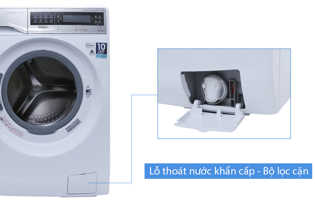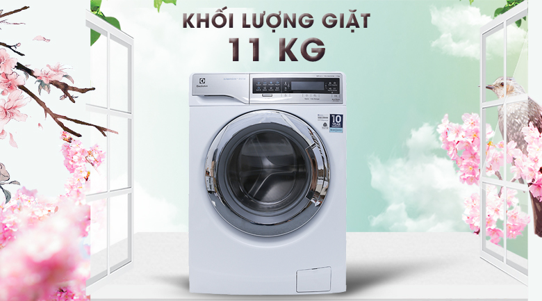 Sản phẩm thuộc phân khúc cao cấp cùng khối lượng giặt lên đến 11 kg phù hợp với các gia đình có từ 6 thành viên trở lên.