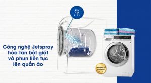 Giặt giũ sạch sẽ, ít tốn nước hơn nhờ vào công nghệ giặt thân thiện môi trường Jetspay với khả năng tăng tuần hoàn nước và lưu hành đồ ổn định trong chu trình giặt.