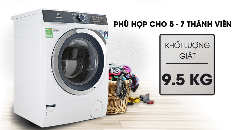 Khối lượng giặt 9.5 kg cho gia đình 5 – 7 thành viên