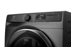 – Máy giặt Electrolux có kiểu dáng lồng ngang – cửa trước hiện đại, mang màu đen chủ đạo cùng đường nét tối giản phù hợp với nhiều không gian nội thất.