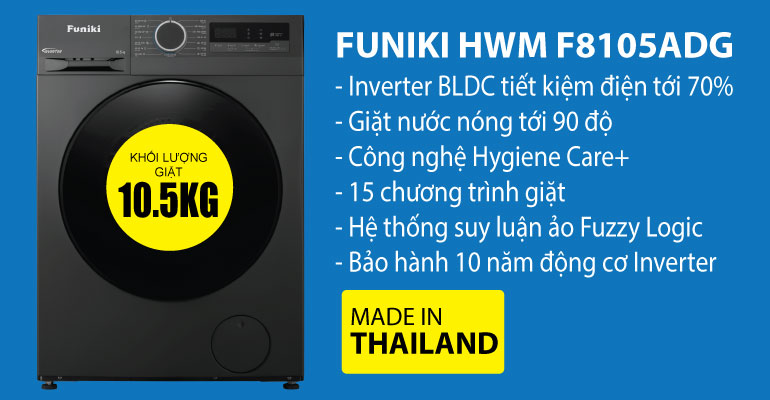 Máy giặt Funiki HWM-F8105ADG Inverter 10.5kg