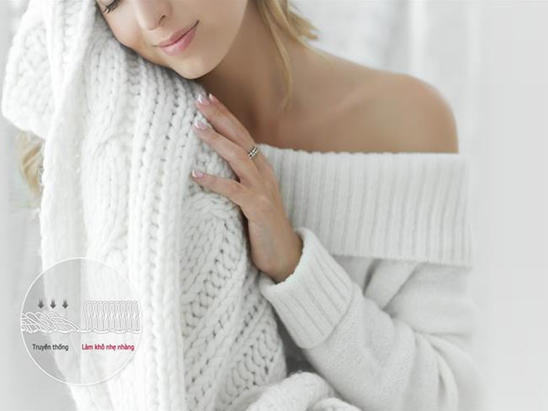 Làm khô quần áo nhẹ nhàng yêu cầu sự chăm sóc đặc biệt mà không phải lo lắng về sự co rút hoặc hư hỏng quần áo. Không còn ẩm ướt và các thiệt hại khác – mà chỉ còn sự tươi mới, sạch sẽ như chúng ta mong đợi!