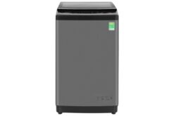 – Máy giặt có kiểu dáng cửa trên – lồng đứng, lắp đặt dễ dàng với các nội thất trong gia đình với tone màu xám.