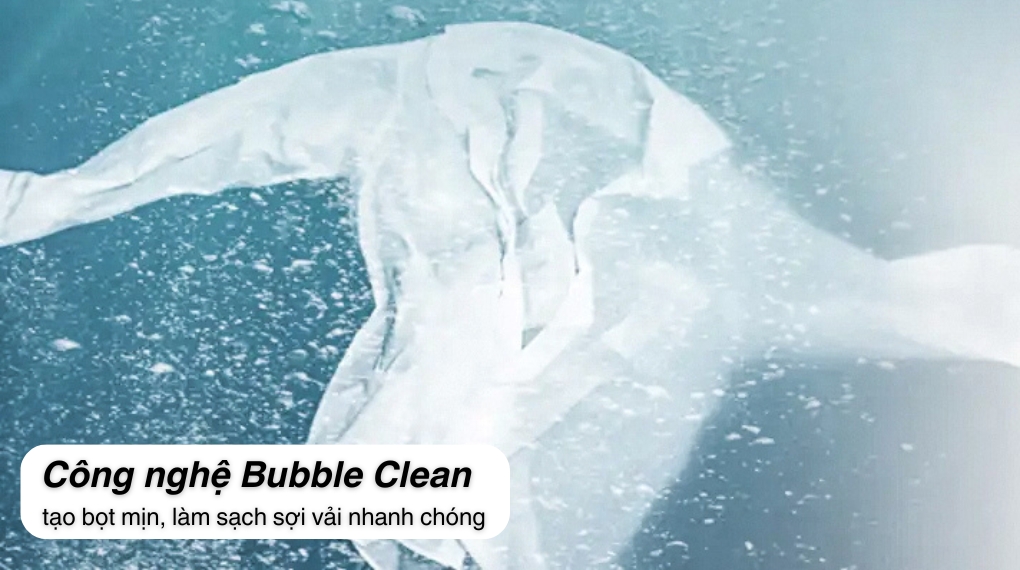– Công nghệ Bubble Clean tạo bọt mịn giúp hòa tan chất giặt tẩy nhanh chóng, thẩm thấu sâu vào sợi vải để làm sạch hiệu quả mà không để lại cặn.