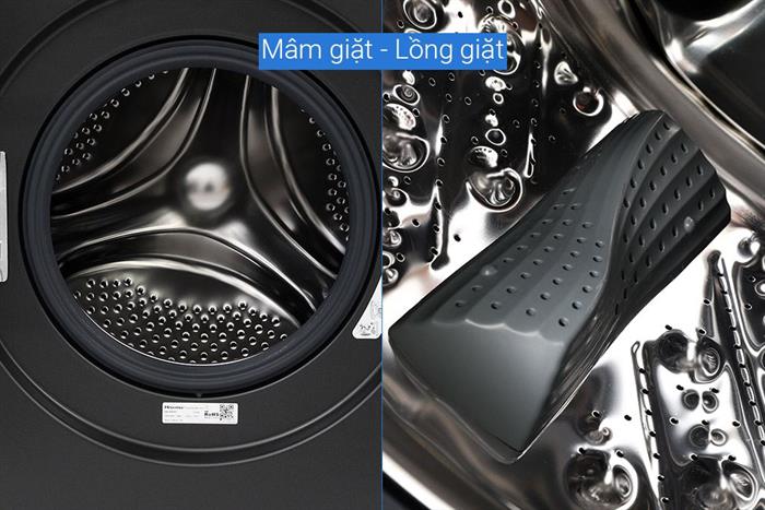 – Lồng giặt sử dụng chất liệu thép không gỉ với cấu trúc chắc chắn, hạn chế bám cặn, chống rỉ và dễ dàng làm sạch sau nhiều chu kỳ sử dụng. Thiết kế lồng ngang giúp tăng khả năng nhào trộn, giặt sạch hiệu quả mà vẫn bảo vệ sợi vải.