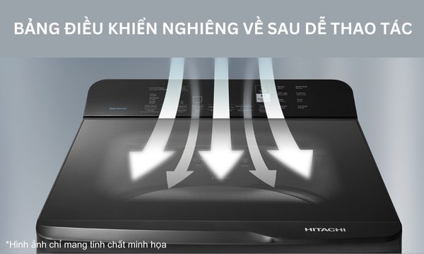 Máy giặt Hitachi LTL H0MVW0T GG thiết kế bảng điều khiển theo phong cách công thái học, tức nghiêng về phía sau để bạn vừa nhìn rõ và dễ dàng thao tác các chức năng, vừa giúp bảng điều khiển luôn khô ráo ngay cả khi bạn có vô tình làm rơi nước lên trên.