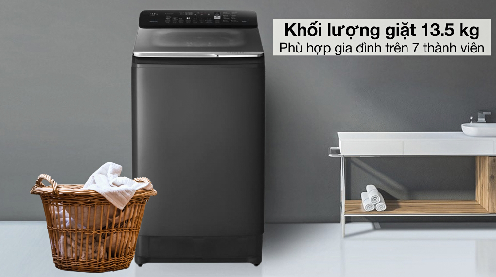 – Với khả năng giặt đến 13.5 kg quần áo mỗi mẻ, máy đáp ứng tốt cho gia đình trên 7 người hoặc các hộ thường giặt đồ dày, chăn mền, đồng phục,…