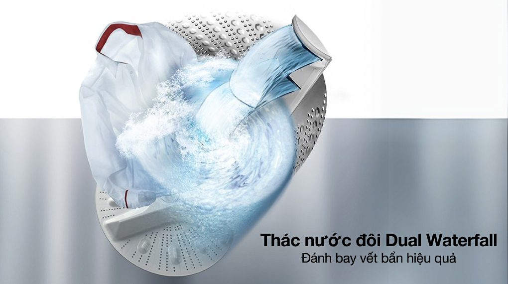 – Thác nước đôi (Dual Waterfall): thiết kế đặc biệt giúp phân phối nước đồng đều từ hai tầng, giúp chất giặt tẩy lan tỏa nhanh và thẩm thấu sâu hơn vào sợi vải.