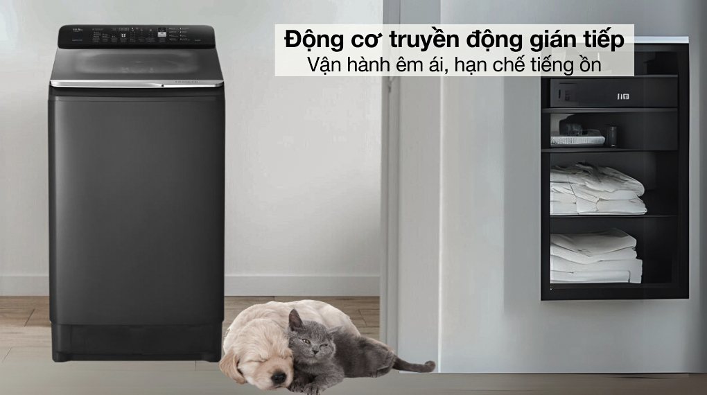 – Máy được thiết kế theo kiểu cửa trên truyền thống, dễ thao tác và phù hợp với không gian giặt giũ phổ biến tại gia đình Việt. Tông màu xám đậm tạo cảm giác sang trọng, hiện đại.