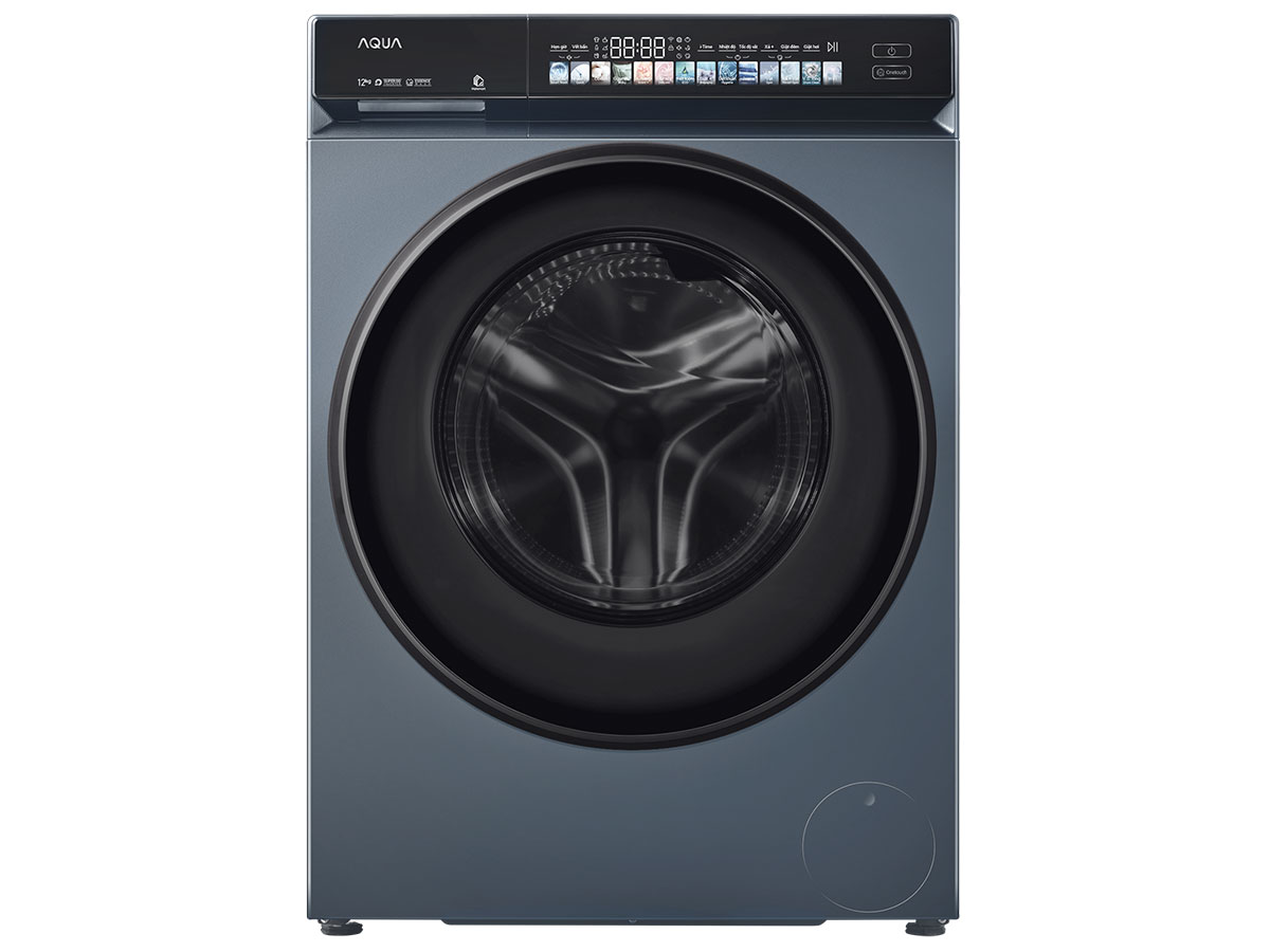 Máy giặt Aqua Inverter AW12-B4377U1L(GN) sở hữu thiết kế cửa trước hiện đại với tông màu đen sang trọng, mang đến vẻ đẹp tinh tế cho không gian sống gia đình.