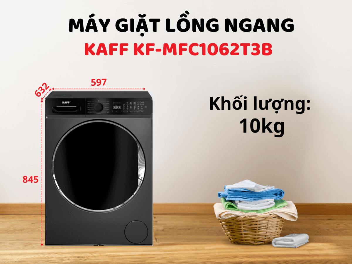 Máy giặt Kaff KF-MFC1062T3B thiết kế cửa trước hiện đại, khối lượng giặt 10kg
