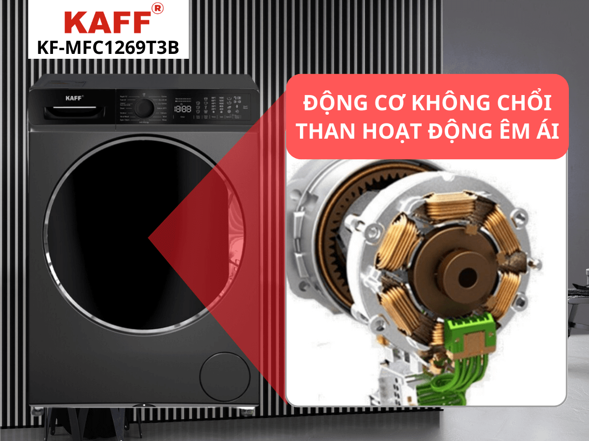Máy giặt Kaff KF-MFC1269T3B sử dụng động cơ không chổi than BLDC thế hệ mới với nhiều ưu việt nổi bật. Động cơ hoạt động êm ái, chỉ phát ra tiếng ồn thấp giúp người dùng sử dụng máy thoải mái hơn. Đồng thời động cơ này tiêu thụ điện năng ít hơn, giúp tiết kiệm chi phí vận hành lên đến 50% so với các động cơ thông thường khác.
