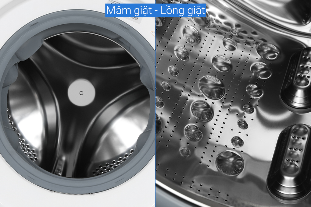 – Lồng giặt bằng thép không gỉ bền bỉ và duy trì được độ sáng bóng sau khoảng thời gian sử dụng.