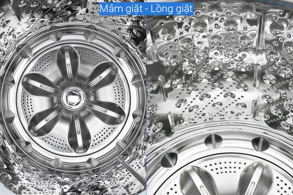 Công nghệ TurboDrum cho phép mâm giặt và lồng giặt quay ngược chiều hoặc cùng chiều nhau để đồ giặt bên trong luân chuyển trái, phải linh hoạt nhờ xoáy nước mạnh. Từ đó tạo hiệu ứng chà xát nhẹ nhàng để không làm hư tổn quần áo nhưng vẫn đảm bảo khả năng làm sạch