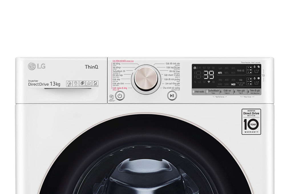 Máy giặt LG Inverter 13 kg FV1413S3WA với khối lượng giặt tối đa 13 kg, sở hữu các công nghệ giặt hơi nước, nước nóng diệt khuẩn, ngừa dị ứng, công nghệ cảm biến AI DD, 6 Motion DD giặt sạch, bảo vệ quần áo và khả năng tiết kiệm điện từ công nghệ Inverter cùng tiện ích điều khiển, kết nối máy giặt thông qua smartphone. Đây sẽ là mẫu máy giặt lồng ngang đáng quan tâm dành cho các gia đình có đông thành viên (từ 7 người) với nhu cầu giặt giũ cao.