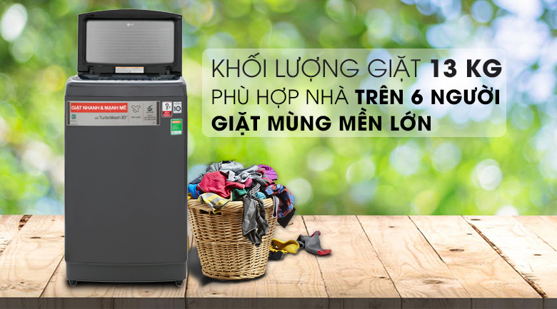 Chiếc máy giặt LG 13 kg phù hợp cho gia đình đông thành viên (trên 6 người) sẽ là một sự lựa chọn đáng cân nhắc cho nhà bạn.