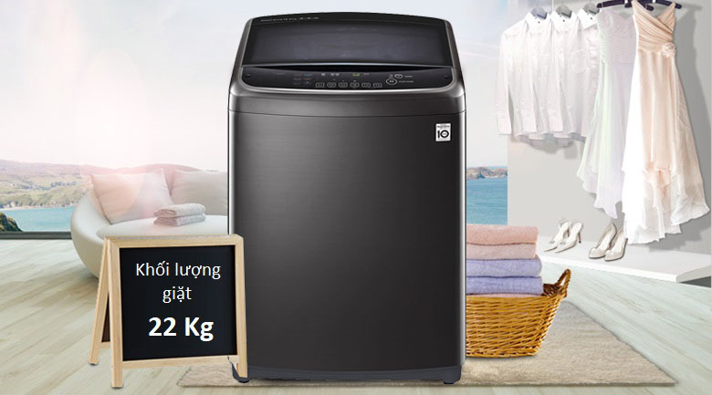 Chiếc máy giặt LG không chỉ là sự lựa chọn lý tưởng cho gia đình đông thành viên với khối lượng đến 22 kg giúp bạn thoải mái hơn trong việc dồn nhiều quần áo để giặt một lần hoặc giặt chăn mền.