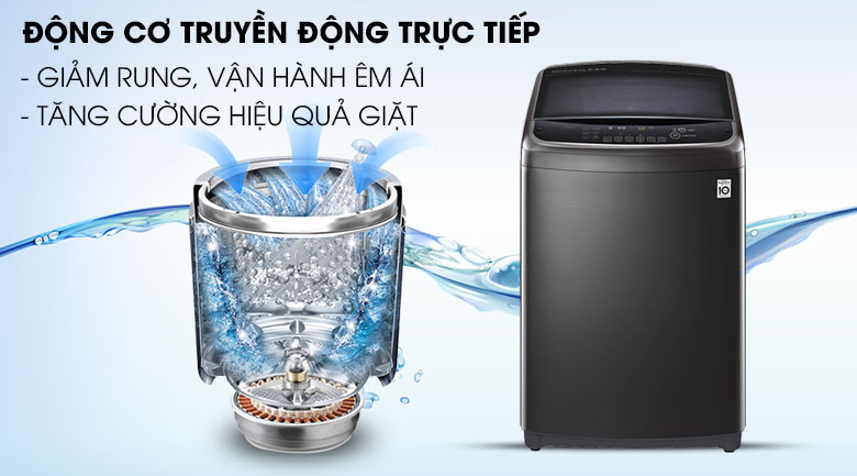 Ở chiếc máy giặt này, LG đã trang bị động cơ truyền động trực tiếp hiện đại. Nhờ vậy, máy có thể hạn chế tối đa rung lắc trong quá trình vận hành, tăng cường hiệu quả giặt giũ tốt hơn mà không gây ra tiếng động ồn ào, khó chịu.