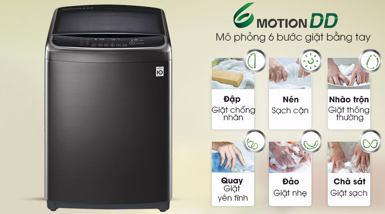 Với công nghệ giặt 6 chuyển động, máy giặt sẽ mô phỏng các bước giặt quần áo theo phương pháp giặt tay, từ đó quần áo sẽ được giặt sạch tốt hơn, đồng thời được đảm bảo độ bền đẹp với thời gian.