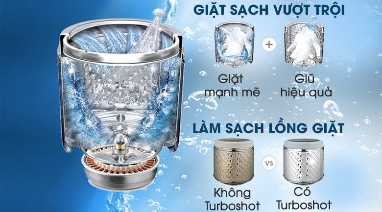 Giặt sạch vượt trội, làm sạch lồng giặt với tính năng Turboshot