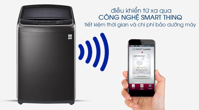 Thông qua công nghệ Smart ThinQ và kết nối wifi, giờ đây bạn đã có thể tùy chỉnh máy giặt của mình bất cứ lúc nào, bất kì đâu chỉ với một chiếc smartphone vô cùng tiện lợi và tiết kiệm thời gian.