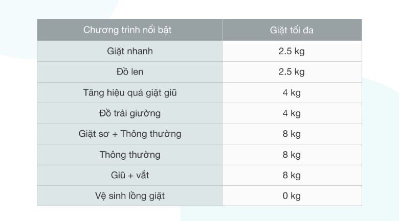 Khối lượng giặt 8 kg, phù hợp gia đình 3 – 5 người