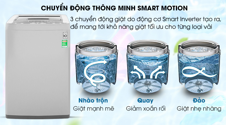 Giặt sạch hiệu quả với 3 chuyển động giặt Smart Motion