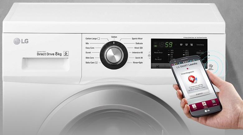 Là một chiếc máy giặt hiện đại, máy giặt LG FM1209N6W được hãng tích hợp tính năng chẩn đoán thông minh Smart diagnosis. Nhờ vậy bạn có thể chẩn đoán lỗi của máy giặt chỉ bằng một chiếc smartphone ngay tại nhà vô cùng tiện lợi.