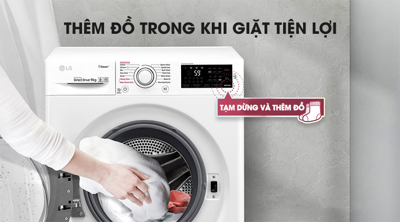 Với tính năng Add Item, máy giặt cho phép bạn tạm dừng và thêm đồ giặt ngay khi máy vận hành. Giờ đây bạn sẽ không phải lo lắng nếu như để sót đồ giặt bên ngoài.