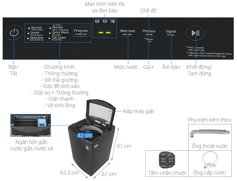 – Với tính năng khóa trẻ em, các phím chức năng sẽ tự khóa khi bật tính năng này lên, giúp tránh tình trạng trẻ thao tác trên bảng điều khiển.