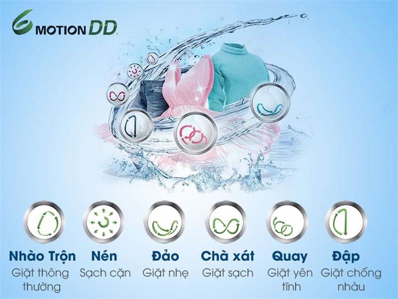 Công nghệ giặt 6 chuyển động, bảo vệ và chăm sóc sợi vải